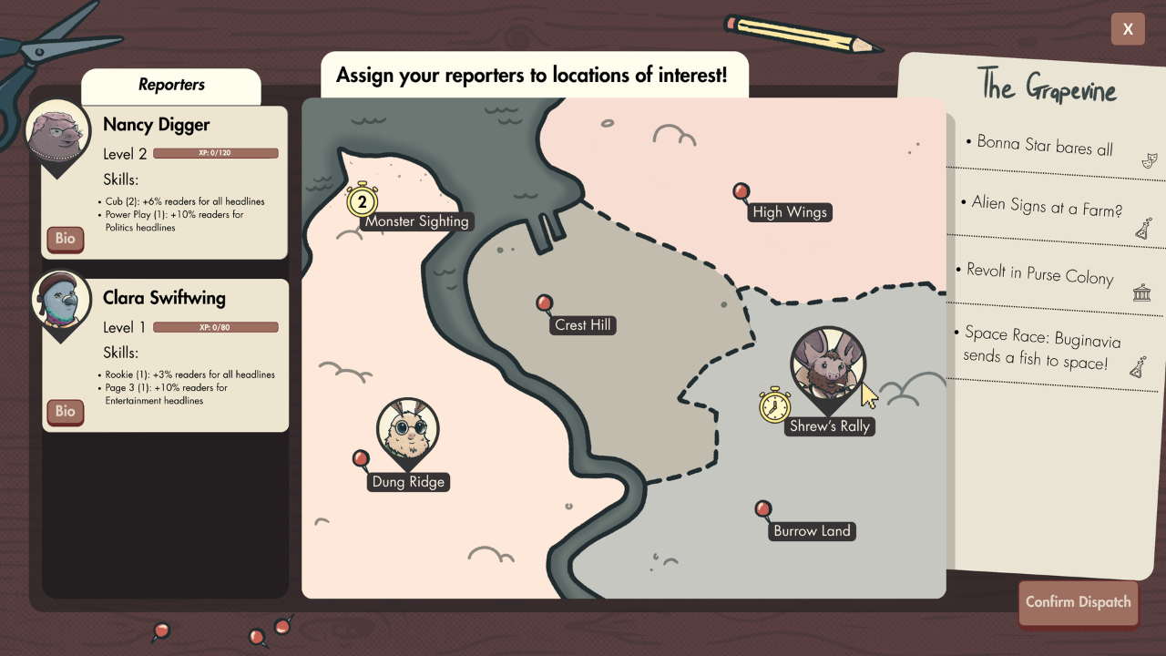 Launch your newspaper and sway the masses in a unique animal world! Direct reporters, plan stories, blow up Headlines for Impact and throw in Ads for Profit. With every faction gunning for a piece of your front page, how far will you go to keep your paper in print — and yourself out of trouble?